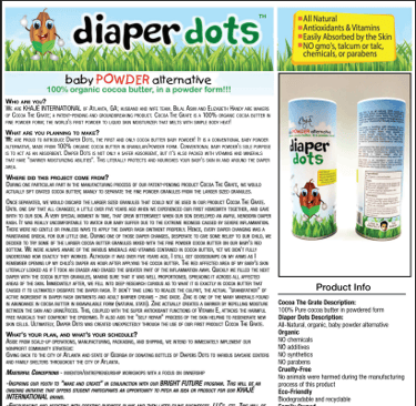 View and Download the product sell sheet for Khajé International's Diaper Dots™ - baby Power alternative.