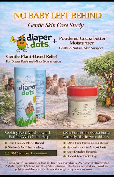 We are inviting real parents to participate in our cocoa butter baby skin care study to help validate a safer, touch-free approach to diaper rash and sensitive skin care.
