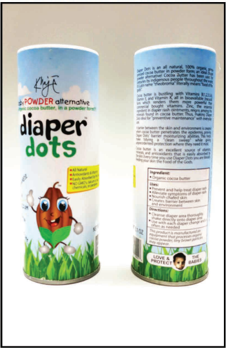 Created and developed by Khajé International, Diaper Dots™ and Cocoa The Grate™ deliver nature’s most trusted ingredients in a world's first patented powder-to-liquid baby moisturizer; made from 100% cocoa butter.
